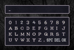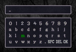 Pressing "Enter" adds the selected character to a string named Text. Unless "Del" is selected, in which case the last character is deleted. Using the same method as in the previous blitting tutorials, Text is constantly re-blitted on every frame.