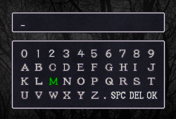 Each Keypad Character object has a unique ID value. If this value matches the Selection value (changed with the arrow keys), then that object is highlighted, by changing it's animation sequence.